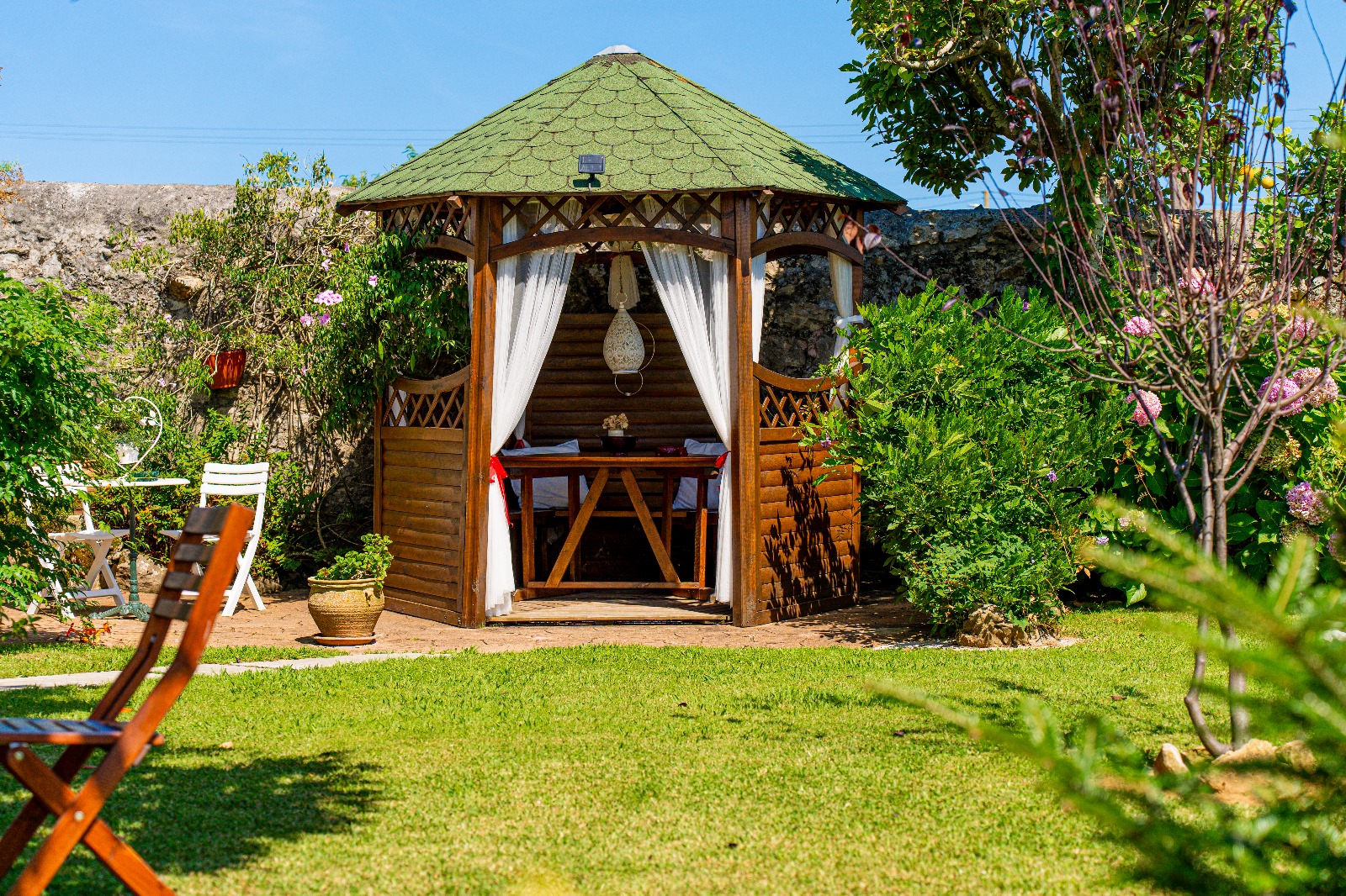 Déjate envolver por la calma de nuestros jardines, un lugar donde el tiempo parece detenerse. Aquí, podrás relajarte rodeado de naturaleza, leer un buen libro, o simplemente dejarte llevar por el sonido de los pájaros y el suave murmullo del viento entre los árboles